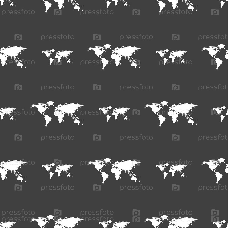 Карта мира. Бесшовный узор на сером фоне. Вектор