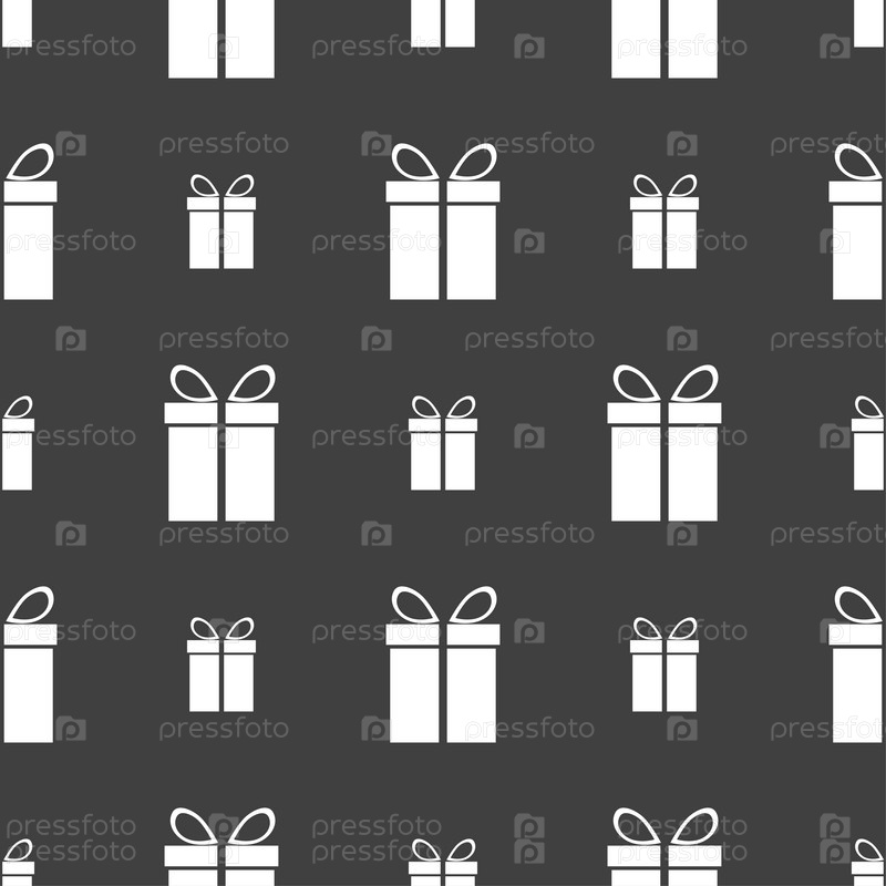 Подарок. Бесшовный узор на сером фоне. Вектор