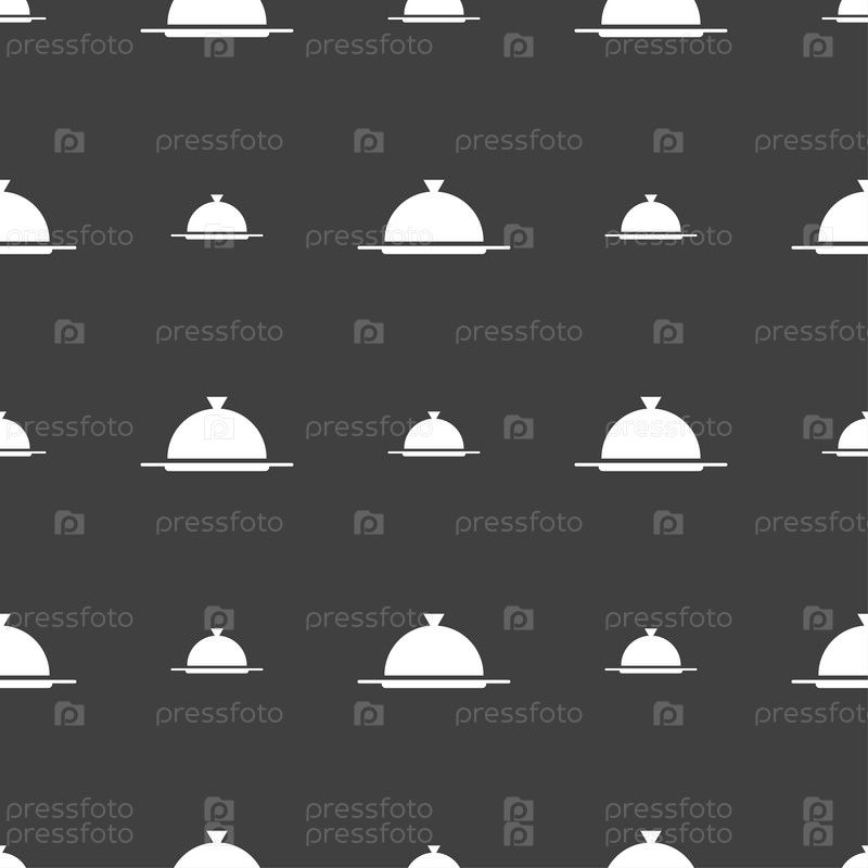 Блюдо, порция, еда. Бесшовный узор на сером фоне. Вектор