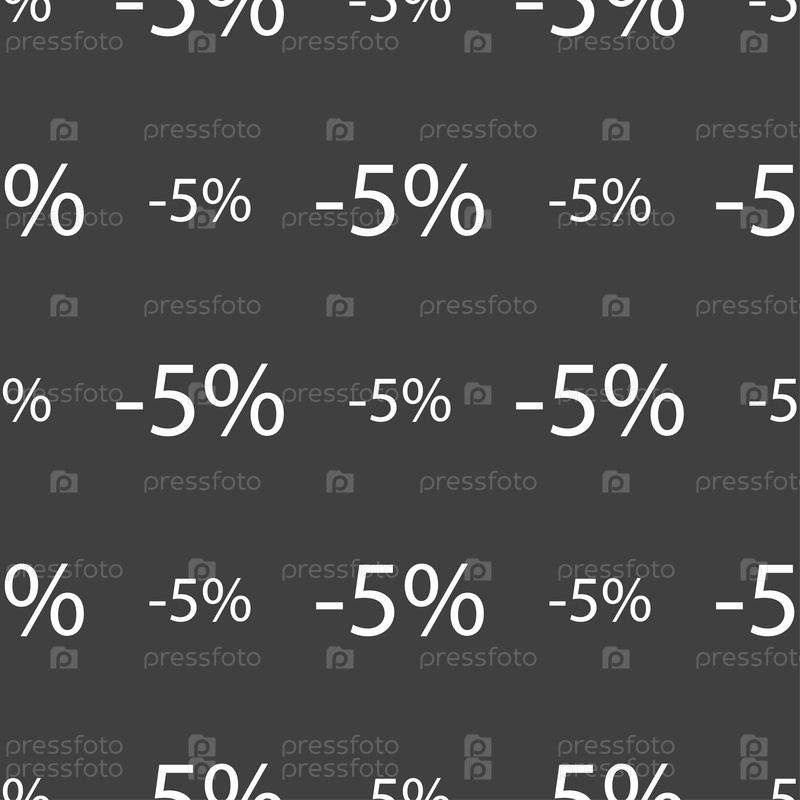 5% скидка. Бесшовный узор на сером фоне. Вектор