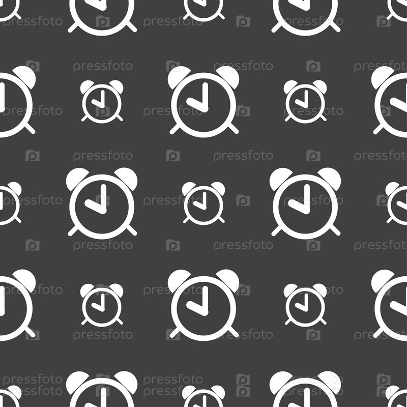 Будильник. Бесшовный узор на сером фоне. Вектор