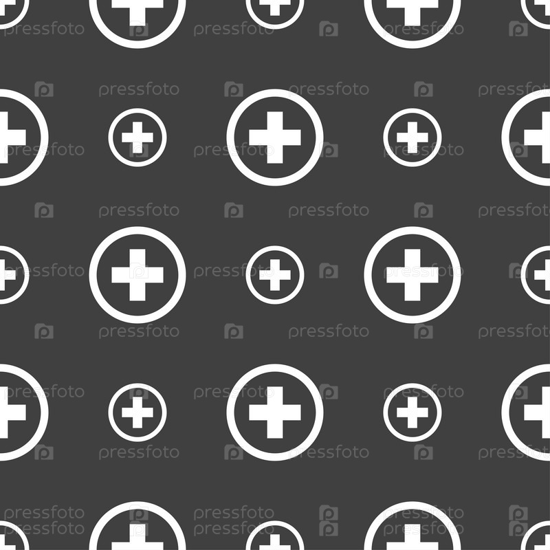 Плюс. Бесшовный узор на сером фоне. Вектор
