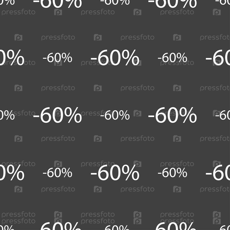 60% скидка. Бесшовный узор на сером фоне. Вектор