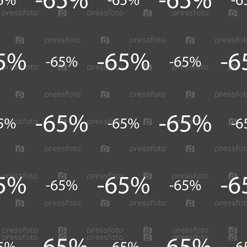 65% скидка. Бесшовный узор на сером фоне. Вектор