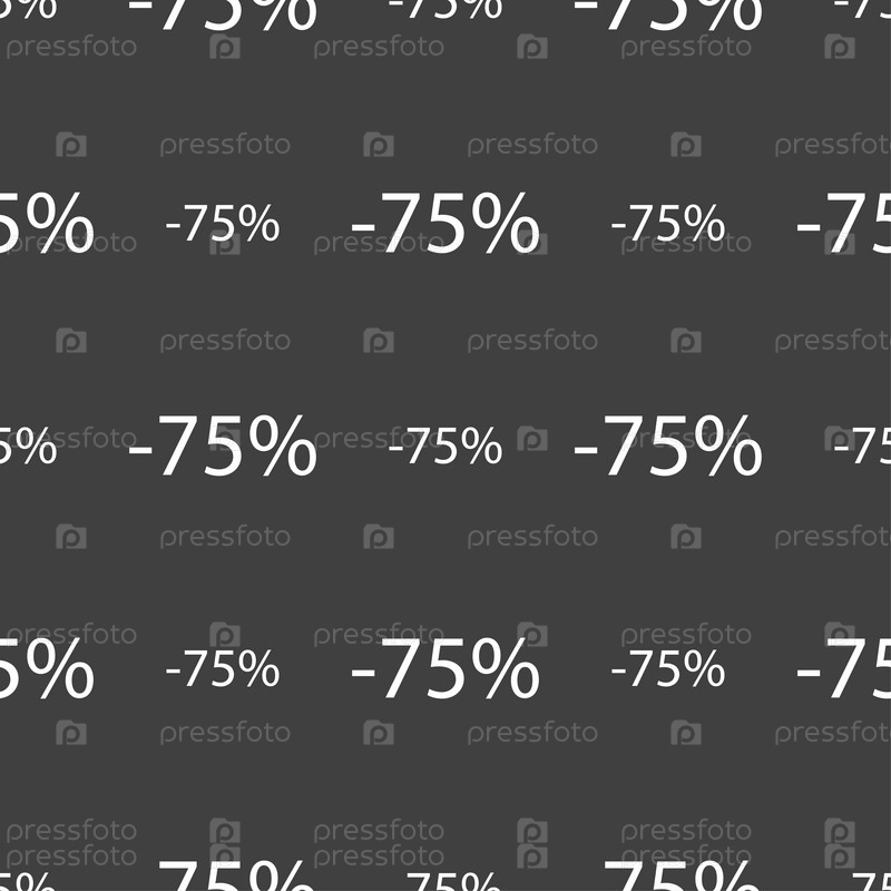 75% скидка. Бесшовный узор на сером фоне. Вектор