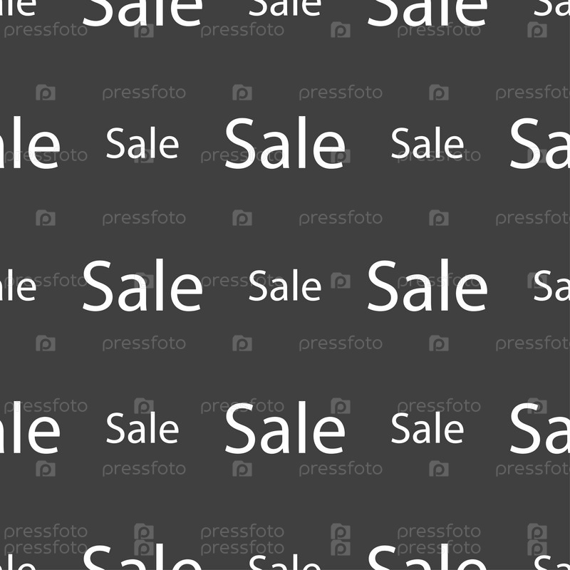 Продажа тег. Бесшовный узор на сером фоне. Вектор