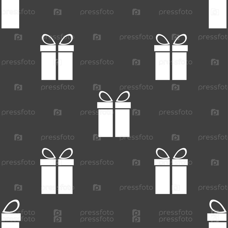 Подарок. Бесшовный узор на сером фоне. Вектор