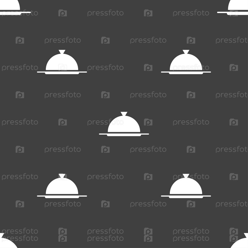 Еда блюдо порция. Бесшовный узор на сером фоне. Вектор