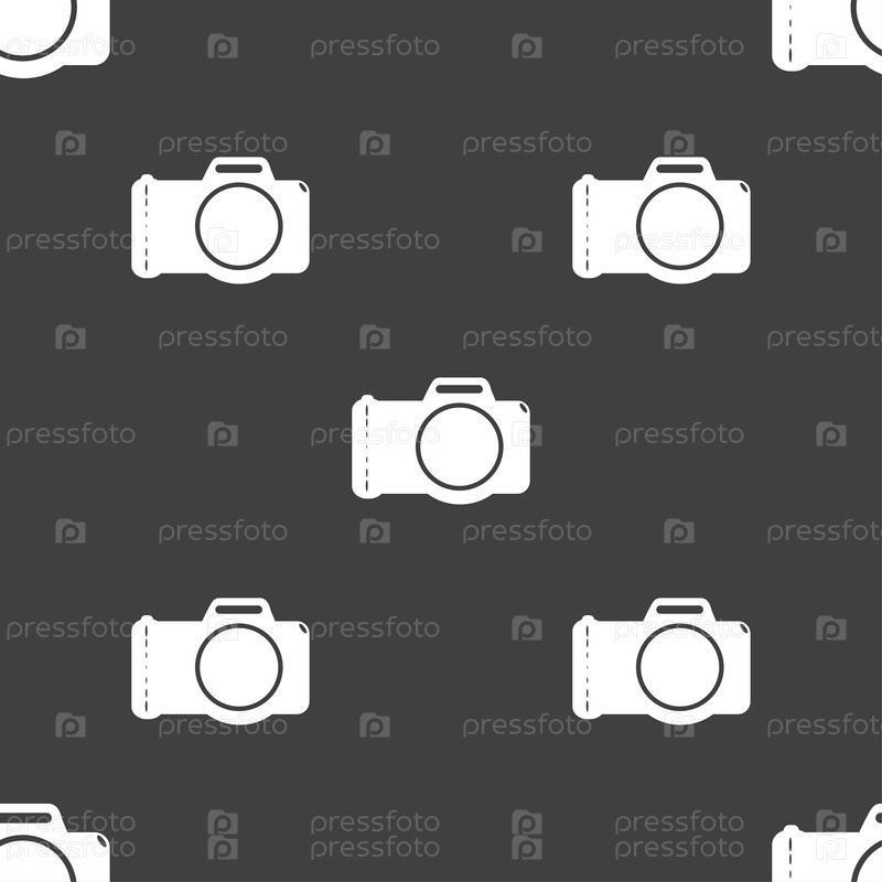 Фото камера. Бесшовный узор на сером фоне. Вектор