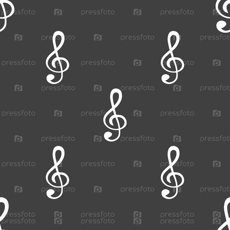 Скрипичный ключ. Бесшовный узор на сером фоне. Вектор