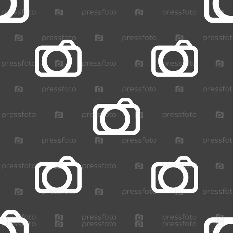 Фото камера. Бесшовный узор на сером фоне. Вектор
