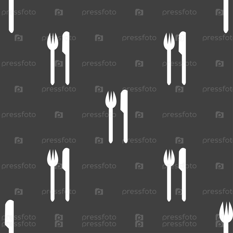 Столовые приборы. Вилка и нож. Бесшовный узор на сером фоне. Вектор