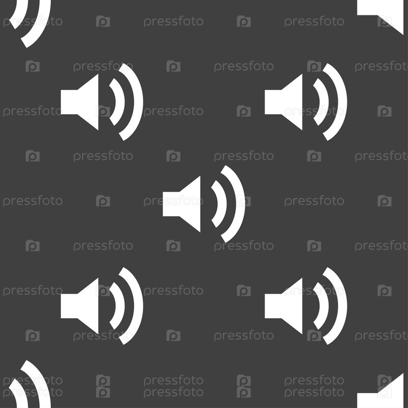 Значок громкости динамика. Бесшовный узор на сером фоне. Вектор