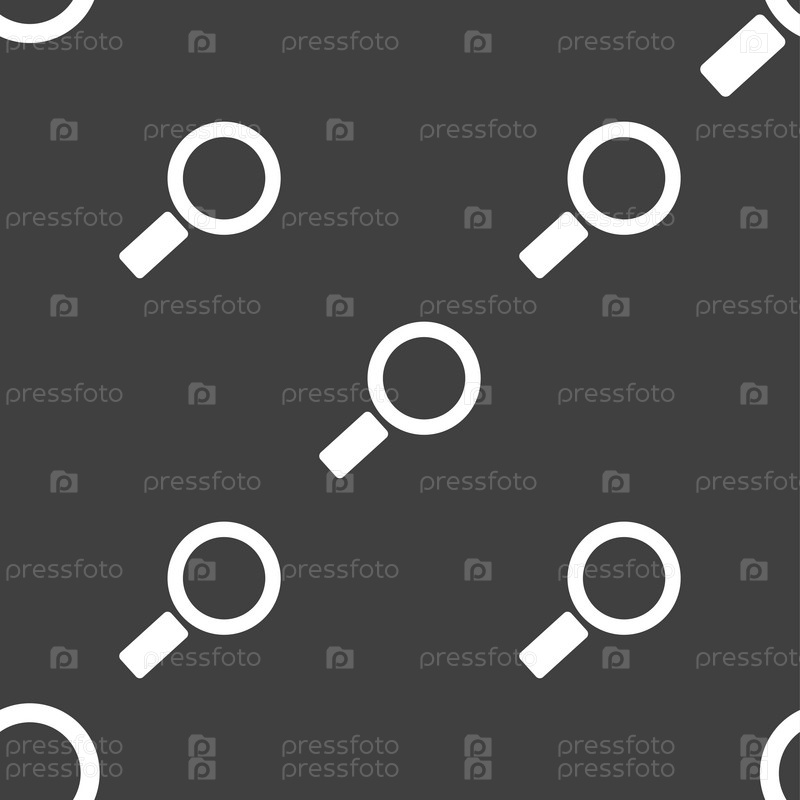 Значок лупы. Бесшовный узор на сером фоне. Вектор