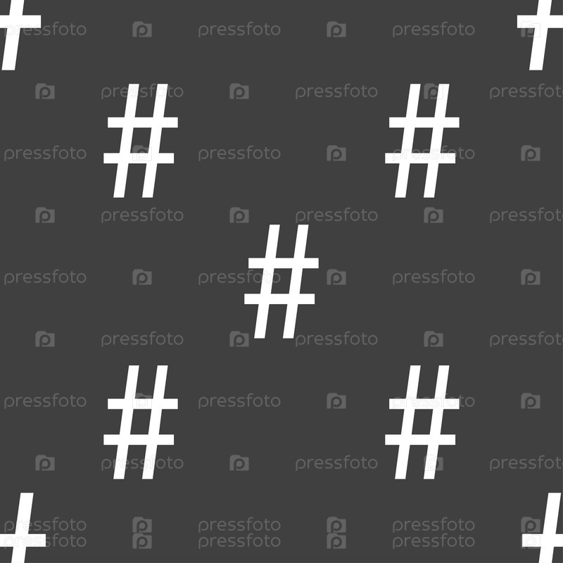 Значок хэш тега. Бесшовный узор на сером фоне. Вектор