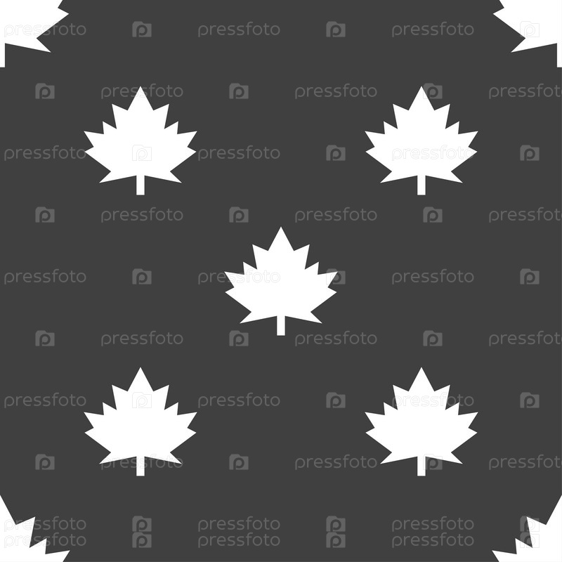 Кленовый лист значок. Бесшовный узор на сером фоне. Вектор