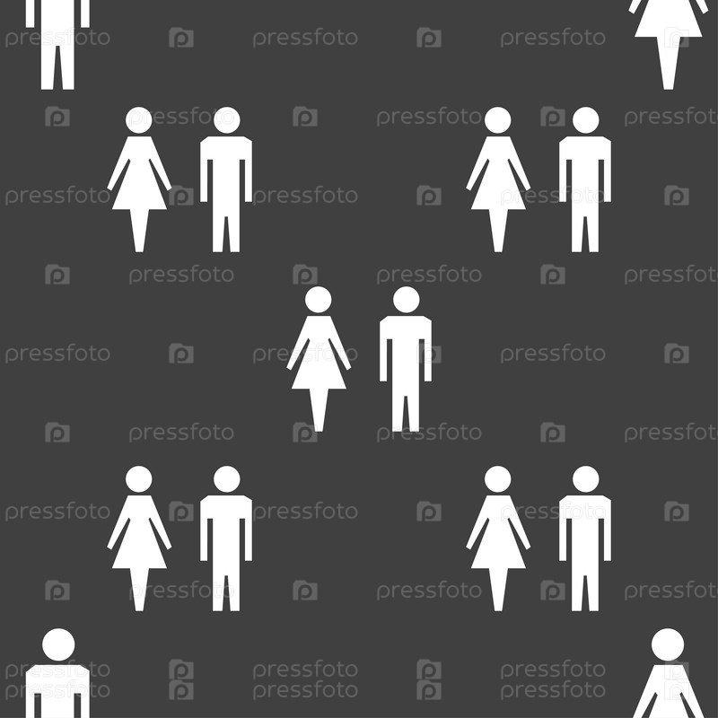 Мужской и женский туалет. Бесшовный узор на сером фоне. Вектор