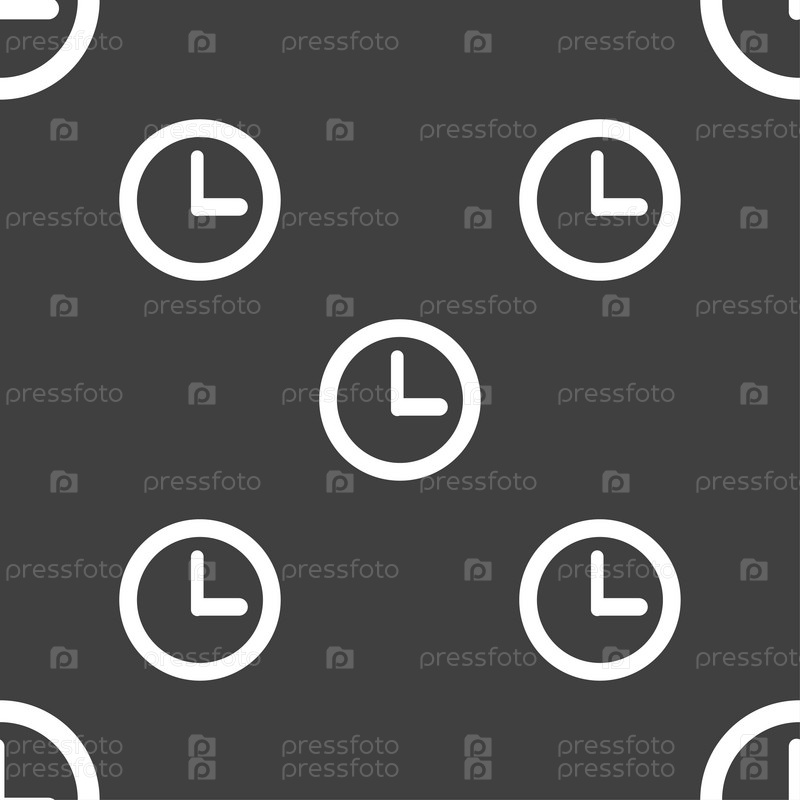 Значок часов. Бесшовный узор на сером фоне. Вектор