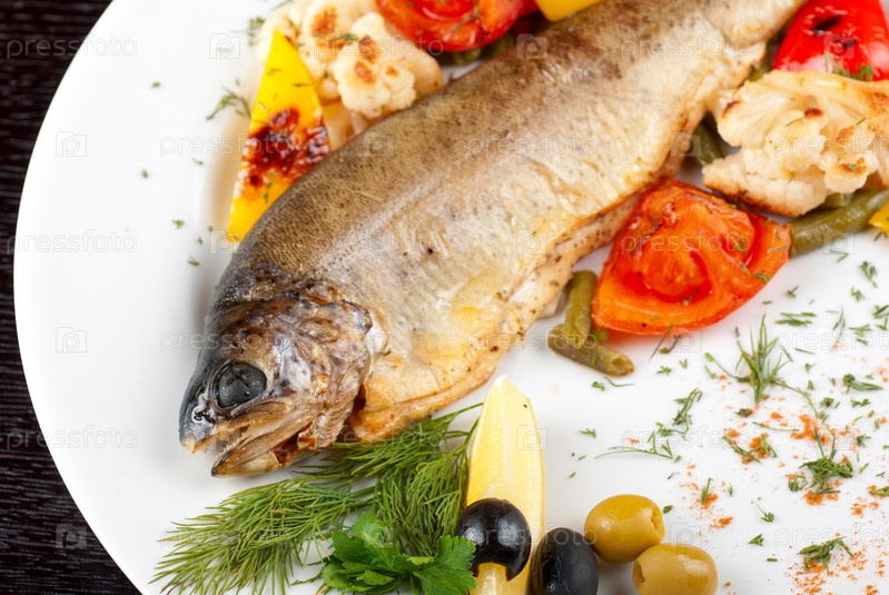Форель, запеченная с овощами