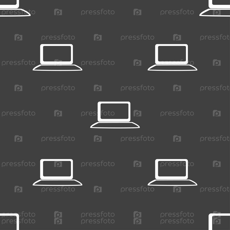 Иконка ноутбук. Бесшовный узор на сером фоне. Вектор