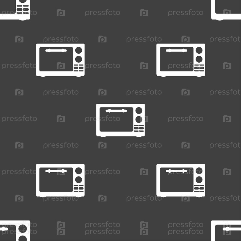 Микроволновая печь. Бесшовный узор на сером фоне. Вектор