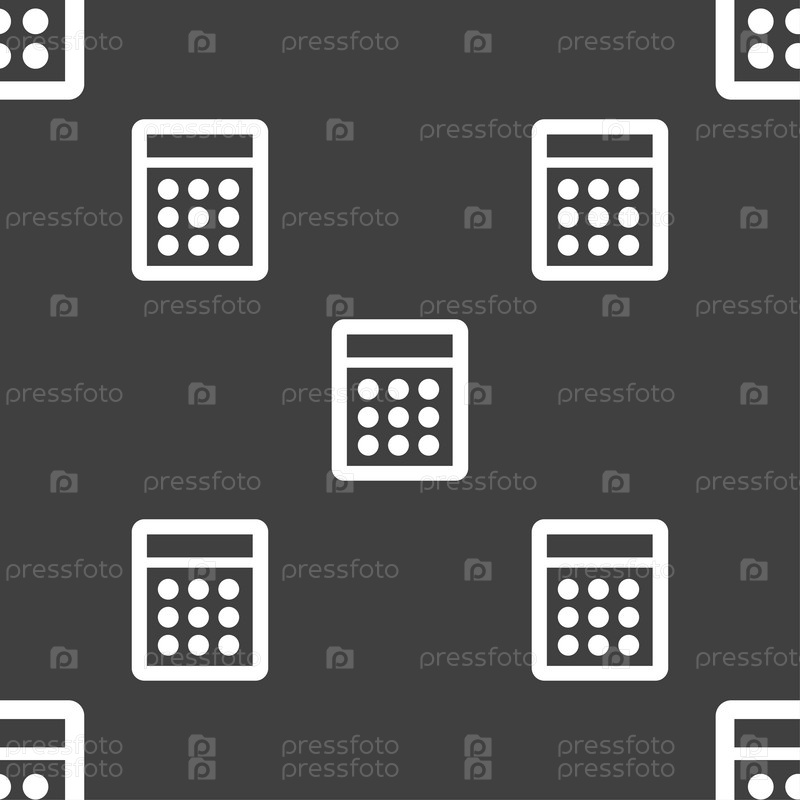 Иконка Калькулятор. Бесшовный узор на сером фоне. Вектор