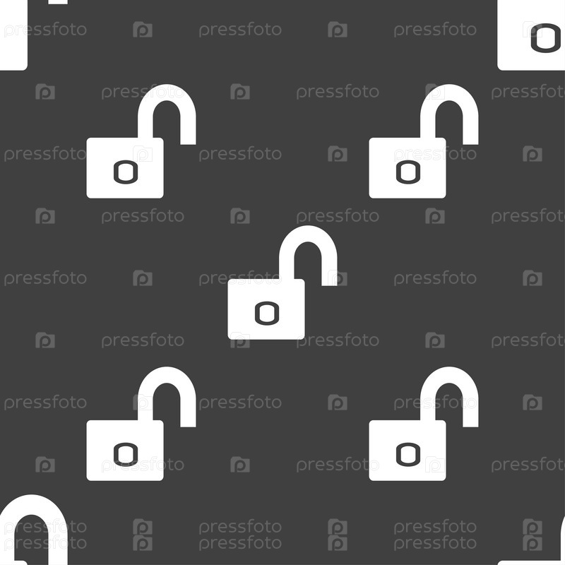 Значок замка. Бесшовный узор на сером фоне. Вектор