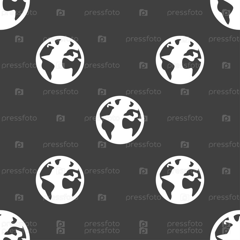 Глобус. Бесшовный узор на сером фоне. Вектор