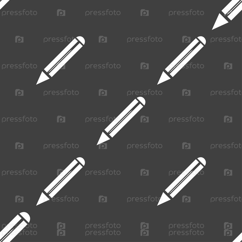Значок карандаша. Бесшовный узор на сером фоне. Вектор