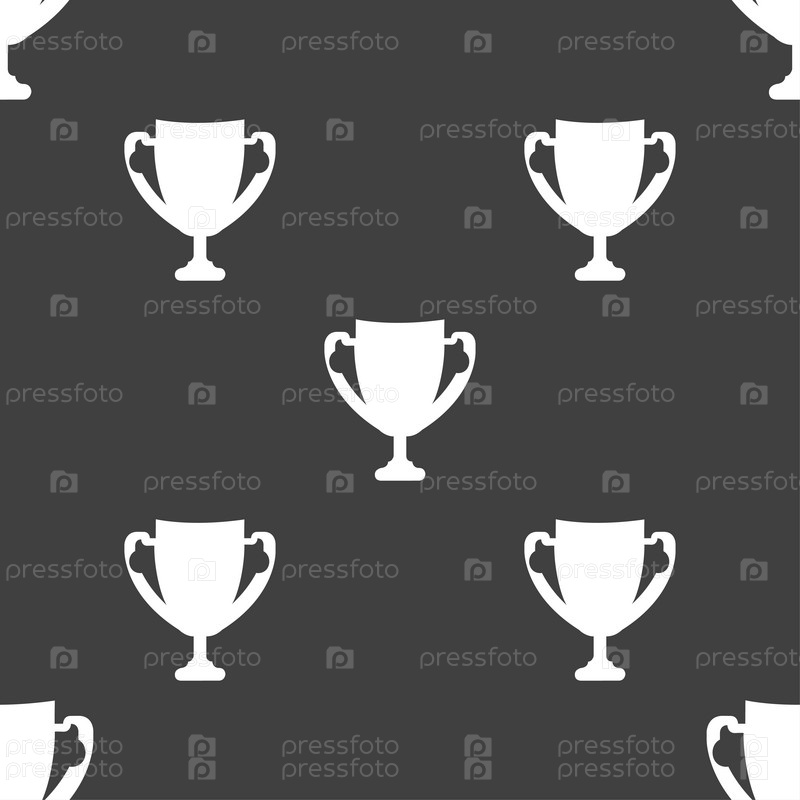 Победитель Кубок. Бесшовный узор на сером фоне. Вектор