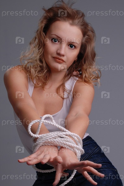 Молодая женщина со связанными руками