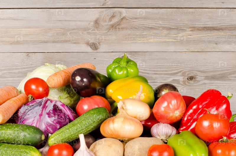 Свежие овощи на деревянном полу