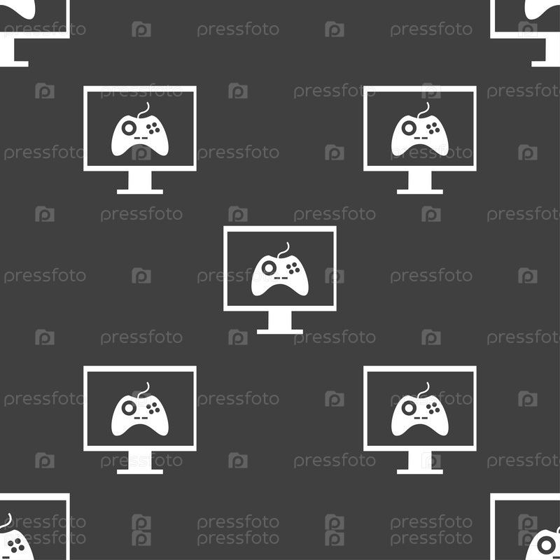 Джойстик. Бесшовный узор на сером фоне. Вектор