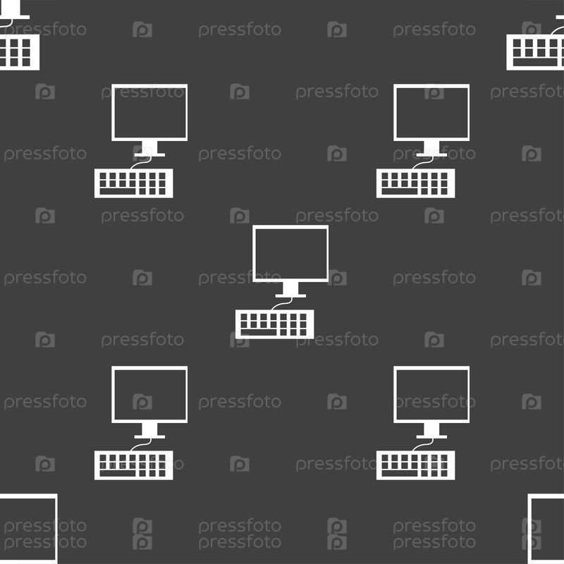 Монитор компьютера и клавиатуры значок. Бесшовный узор на сером фоне. Вектор