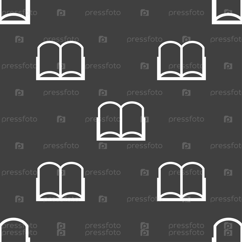 Открытая книга символ. Бесшовный узор на сером фоне. Вектор