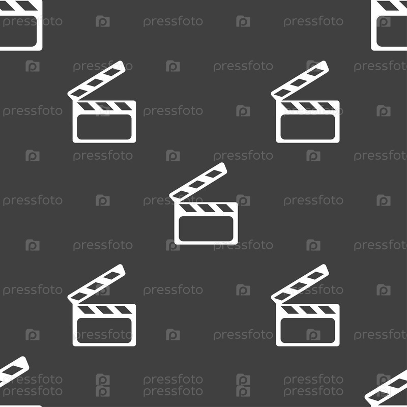 Кино Клаппер. Бесшовный узор на сером фоне. Вектор