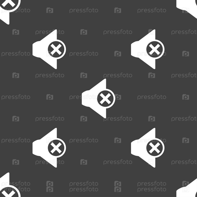 Значок звука динамика. Бесшовный узор на сером фоне. Вектор