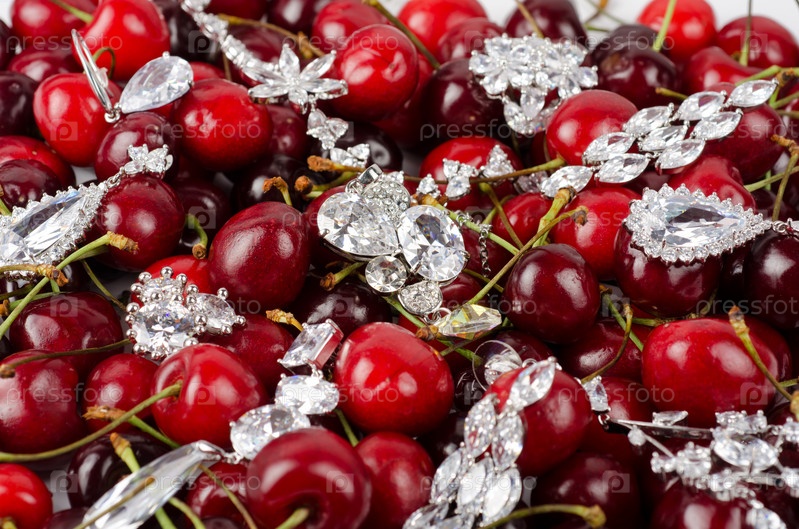 Вишня и драгоценности крупным планом