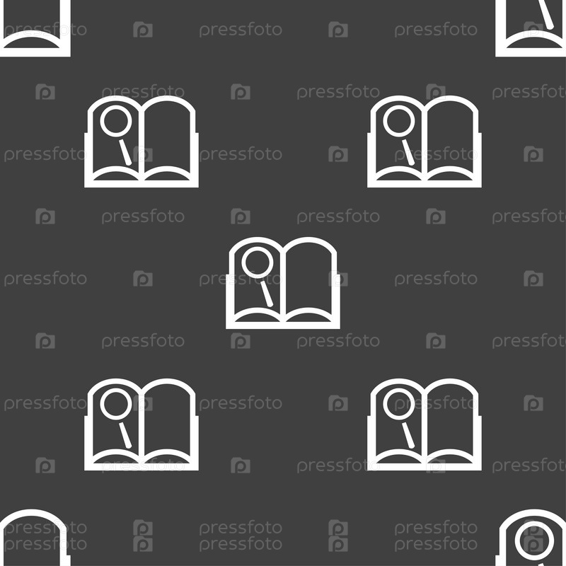 Открытая книга символ. Бесшовный узор на сером фоне. Вектор
