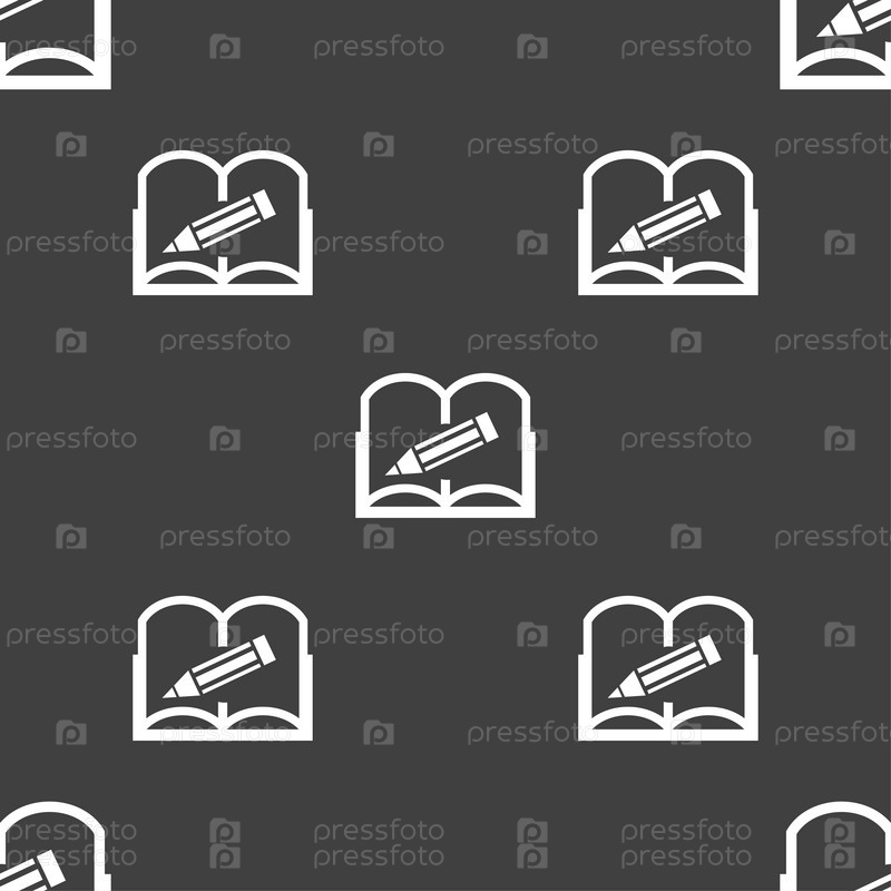 Открытая книга символ. Бесшовный узор на сером фоне. Вектор