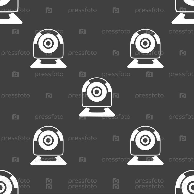 Иконка веб-камера. Бесшовный узор на сером фоне. Вектор