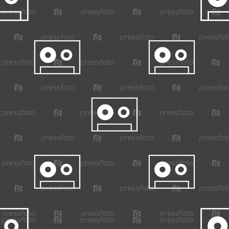 Аудиокассета. Бесшовный узор на сером фоне. Вектор