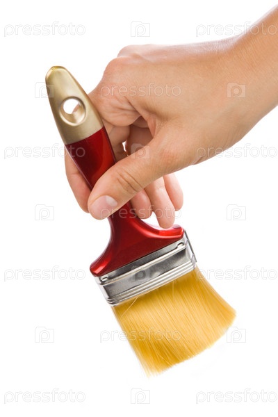 Кисть для малярных работ в руке на белом фоне