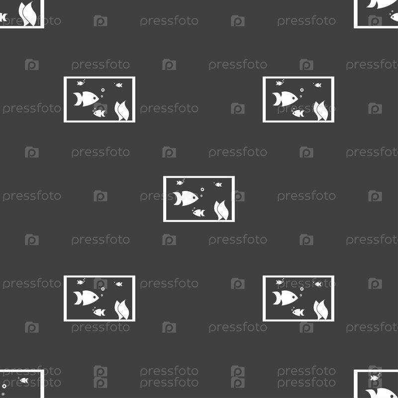 Аквариумы, рыбы в воде. Бесшовный узор на сером фоне. Вектор