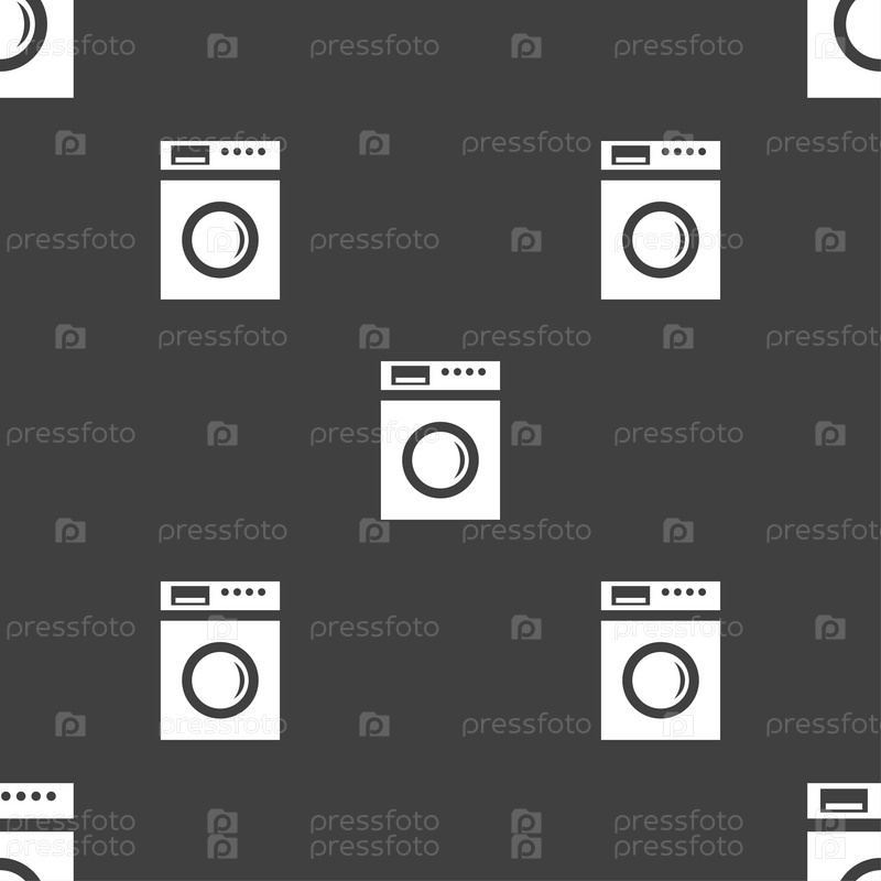 Стиральная машина. Бесшовный узор на сером фоне. Вектор