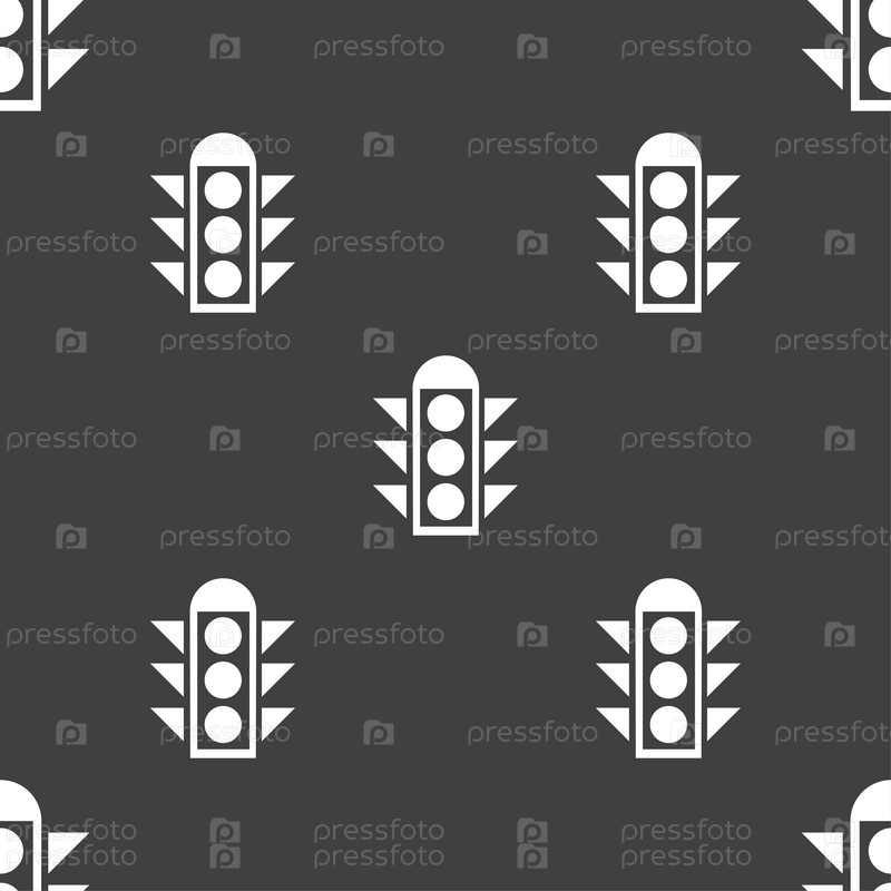 Сигнал светофора. Бесшовный узор на сером фоне. Вектор