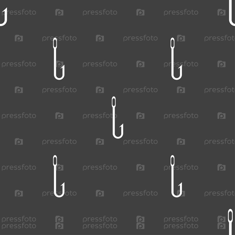 Рыбалка. Бесшовный узор на сером фоне. Вектор