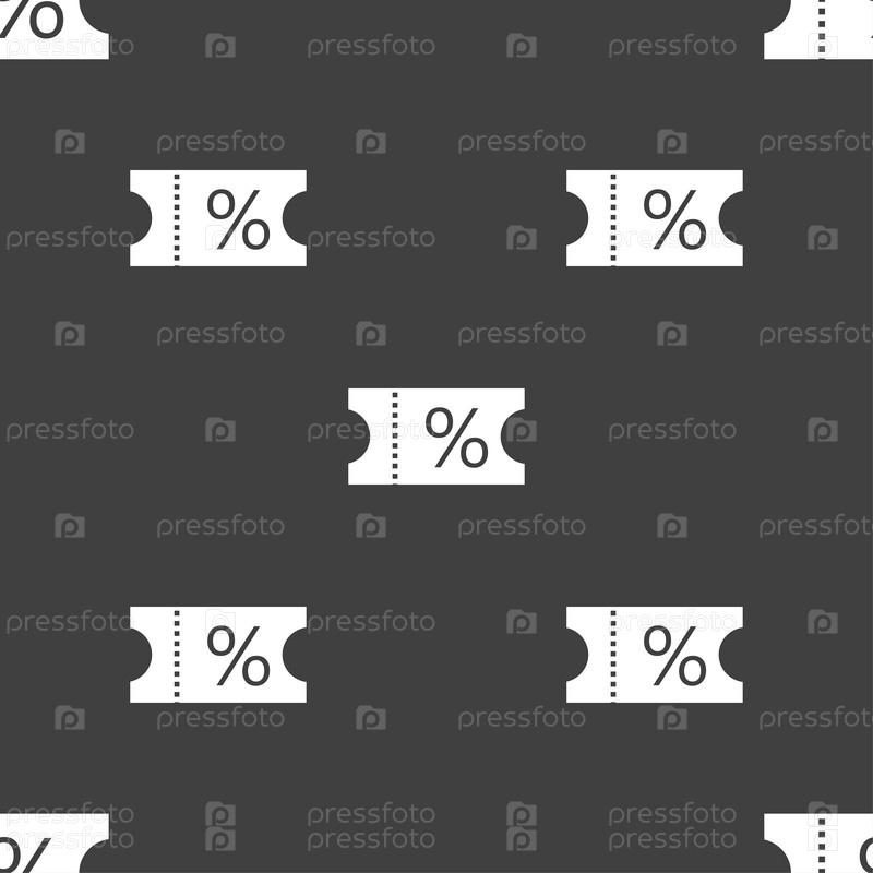 Билет со скидкой. Бесшовный узор на сером фоне. Вектор