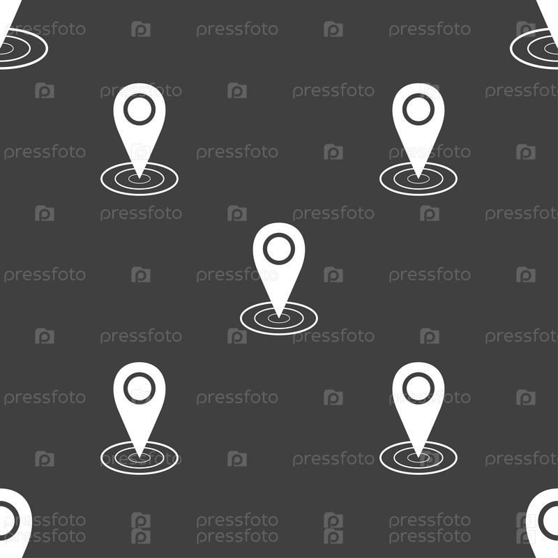 Карта значок указателя. Бесшовный узор на сером фоне. Вектор