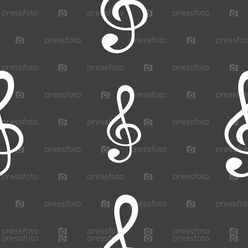 Скрипичный ключ икона. Бесшовный узор на сером фоне. Вектор